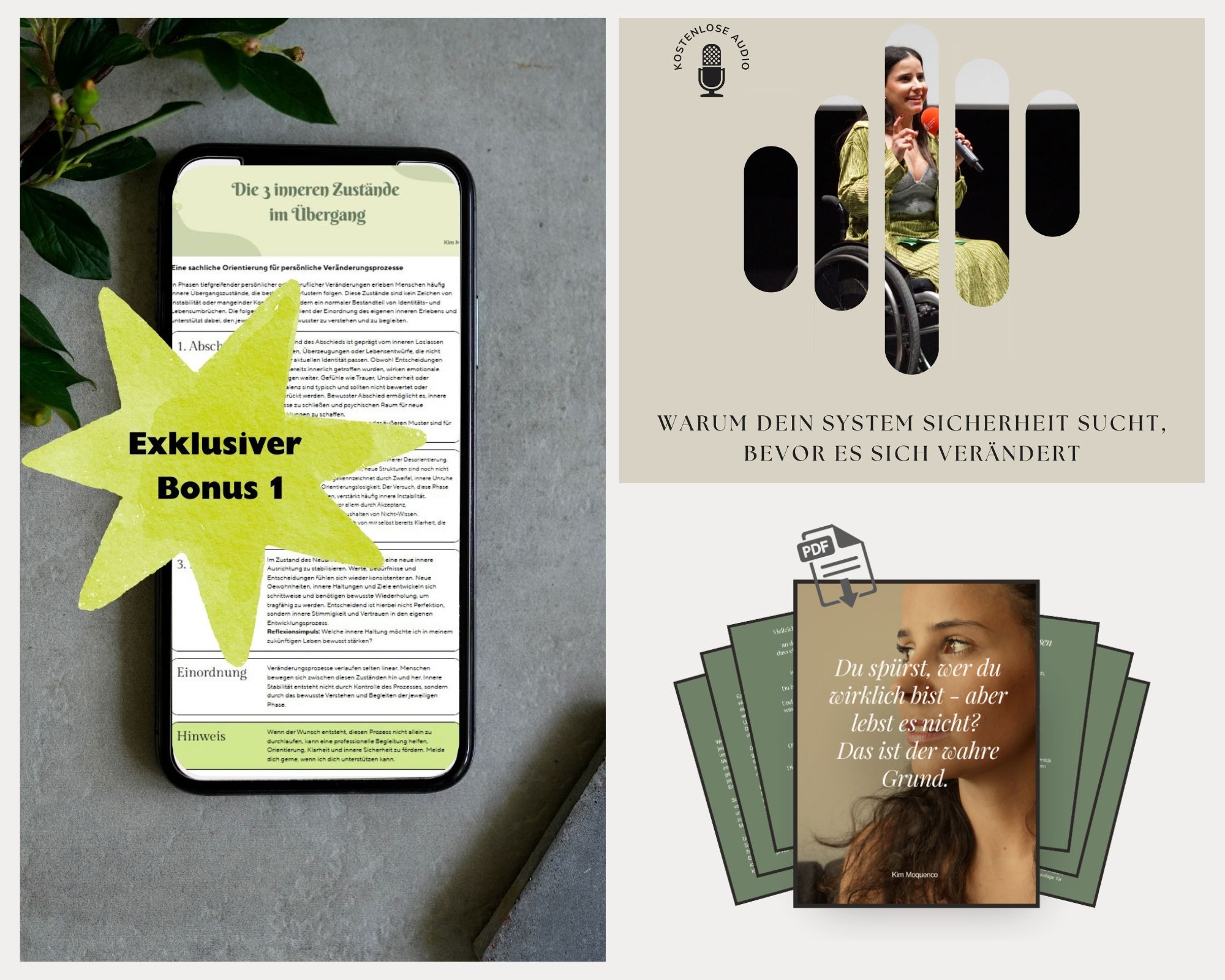 Erfahre, wie du dir selbst die Erlaubnis gibst, dein authentisches Leben zu führen, ohne Maske und ohne Anpassung. Dieser Bonus-Bereich zeigt dir, wie du Stabilität im Inneren entwickelst, damit das Außen nicht mehr so stark schwankt, und wie du den Mut findest, deine eigenen Träume wirklich zu leben.